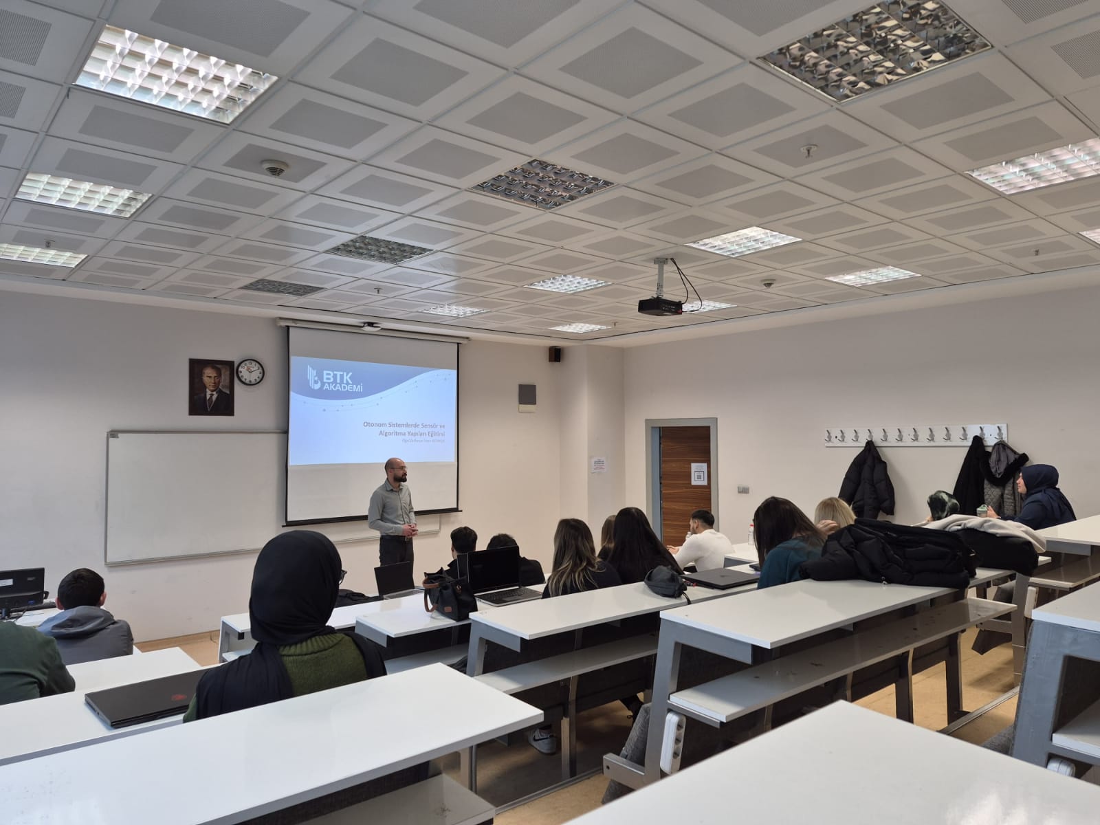 The training was delivered by Lecturer Yunus Emre Altınışık, Head of the Department of Electronics and Automation and Head of the Autonomous Systems Technician Program. During the training, our students had the opportunity to gain both theoretical knowledge and practical experience in sensor technologies used in autonomous systems, data acquisition and processing processes, algorithm structures, and application examples.